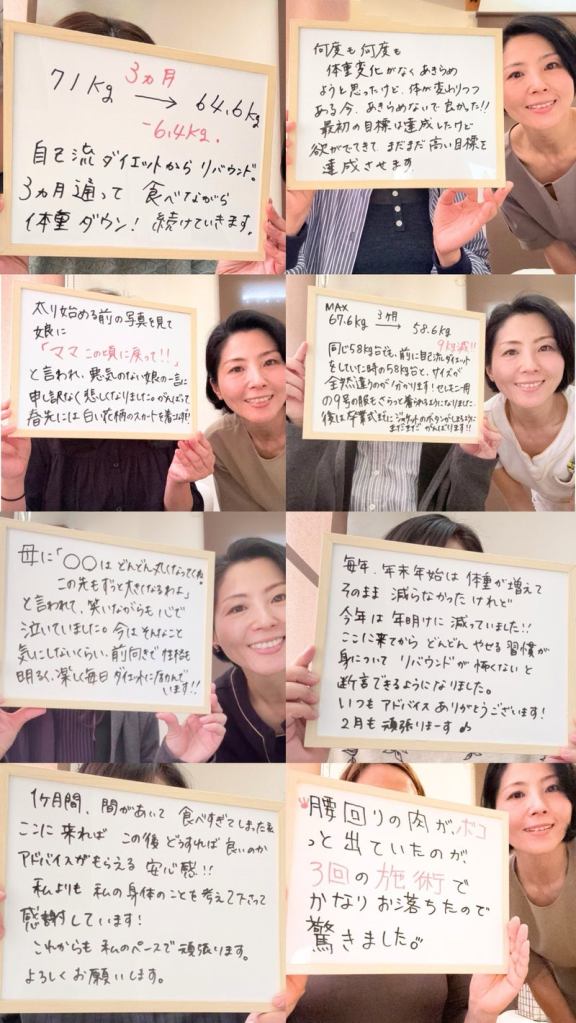 「わたしも出来るんだ!」と痩せたこと自信を取り戻された方もいらっしゃいます。その方たちは今まで躊躇していたお洋服選びを楽しまれたり、新たな資格に挑戦される方もいるんですよ!人生の大きな転機を迎える方もたくさんいます。