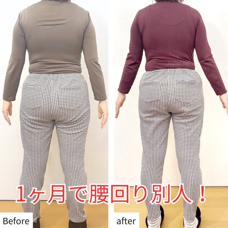 ご本人も笑ってしまうくらい、変化が凄いです。背中がスッキリしただけでなく、お尻が小さくなって上がりました。太もものサイズもしっかり落ちて足が長くなっています。